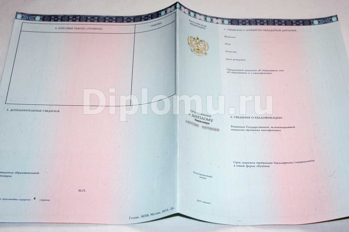 У нас Вы можете купить приложение к диплому в Москве и других городах, заполненное по Вашим пожеланиям. Вы можете самостоятельно указать оценки по профильным предметам или довериться нашим специалистам. Мы подберем для Вас, если нужно, названия дипломной и курсовых работ, места прохождения учебных практик и прочее. Все данные, которые будут занесены в приложение к диплому, соответствуют образовательным стандартам по выбранной Вами специальности. Печать представляет собой оригинальный оттиск чернилами! Сам бланк приложения — настоящий Гознак!
