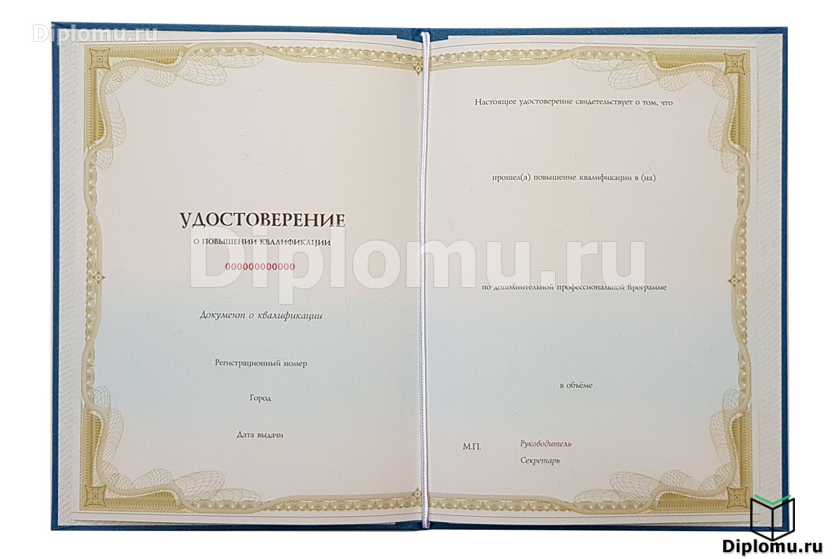 На нашем сайте Вы можете купить удостоверение о повышении квалификации установленного образца на защищённом бланке из любого учебного заведения, где есть соответствующие программы дополнительного образования. Мы сделаем для Вас корочки в короткие сроки, доставим бесплатно в течение 1 дня по Москве, срочно отправим в другие регионы России с оплатой при получении. Если у Вас есть образец удостоверения, можем сделать идентичный документ, но с Вашими данными. Для заказа доступны корочки двух образцов, фото и цены ниже.